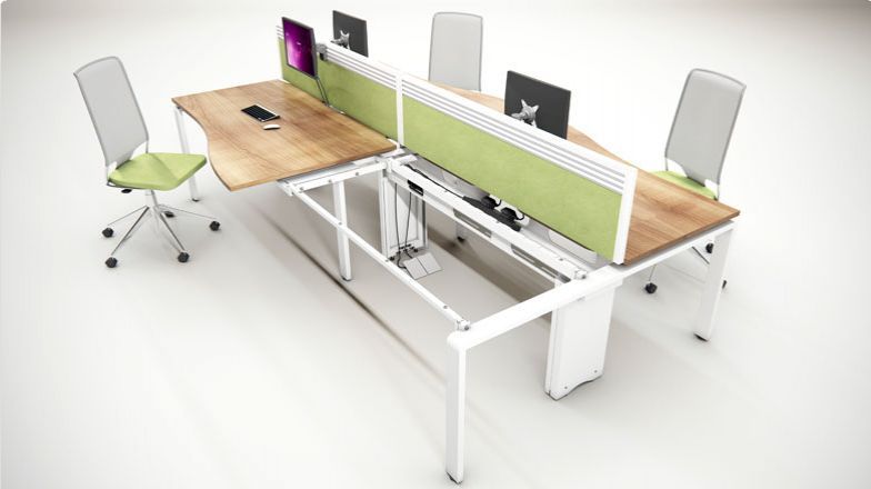 Floating top desk design made from 25mm Grade E1 melamine faced high density particle board with a 3mm edging. The intermediate leg adds extra strength and support. Height levelling feet as standard. A Scallop design is featured at the rear of each desk.